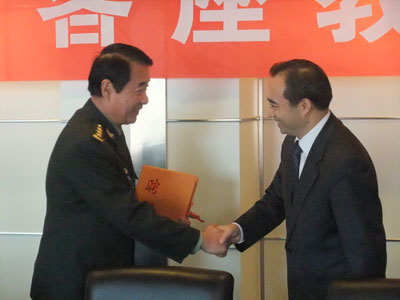 黄进校长为刘源上将颁发聘书