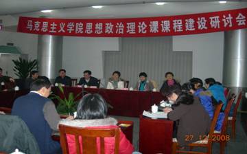 会议由党总支书记兼副院长卫灵教授主持。卫灵教授首先对改革开放三十年来我校思想政治理论课的发展变迁做了简要回顾。之后邰丽华教授对学院2008年的教学工作成绩做了总结,并结合中宣部和教育部2008年(5号)文件,提出今后思想政治理论课发展的方向和目标。各教研室、研究所的教师代表先后发言,总结教学工作成绩,交流教学经验,探讨思想政治理论课教师的责任和义务,明确下一步的教学改革思路。教务处田士永副处长应邀出席会议并讲话,他强调了思想政治理论课的重要性和必要性,认为思想政治理论课完全可以推出一批标志性成果。